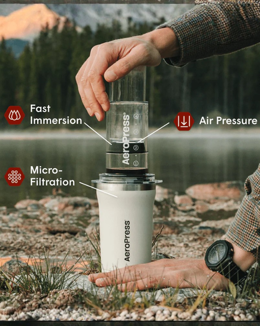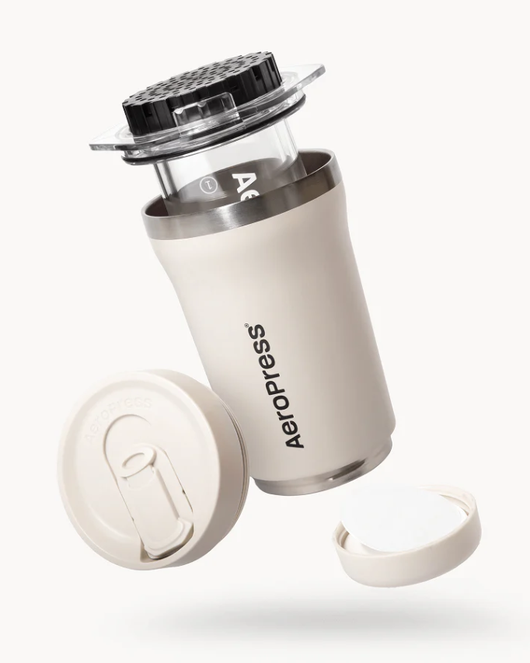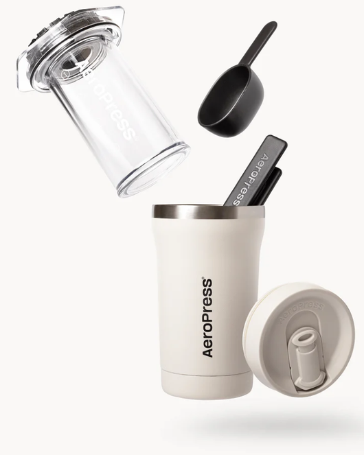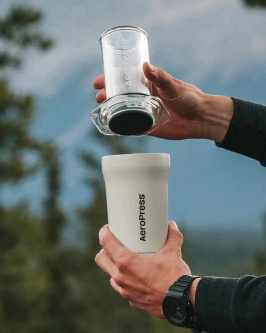 AeroPress Go Plus – أداة تحضير القهوة المحمولة + كوب ستانلس ستيل مزدوج الجدار